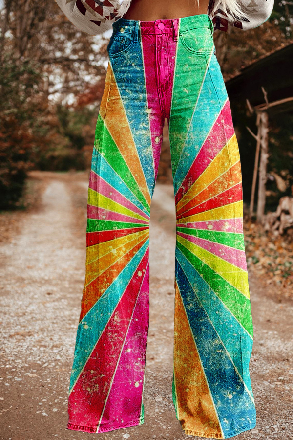 Casual LGBTQ Rainbow Stripe Print Wide-Leg Trousers