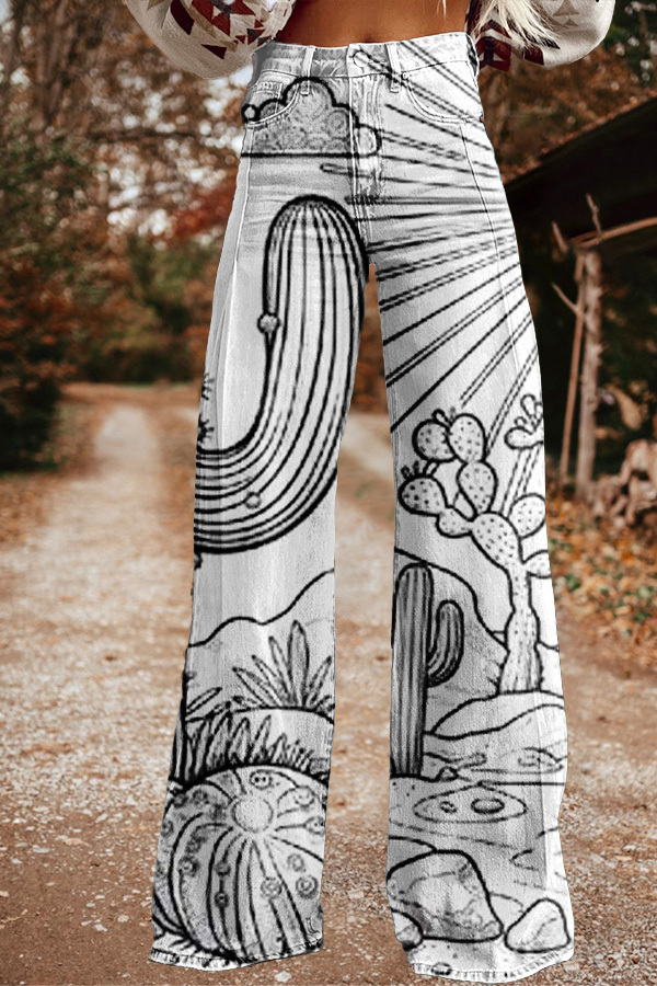 Vintage Western Cactus Wide Leg Pants
