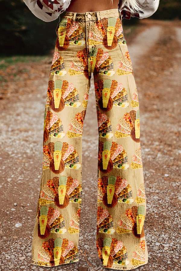 Vintage Turkey Print Wide Leg Trousers
