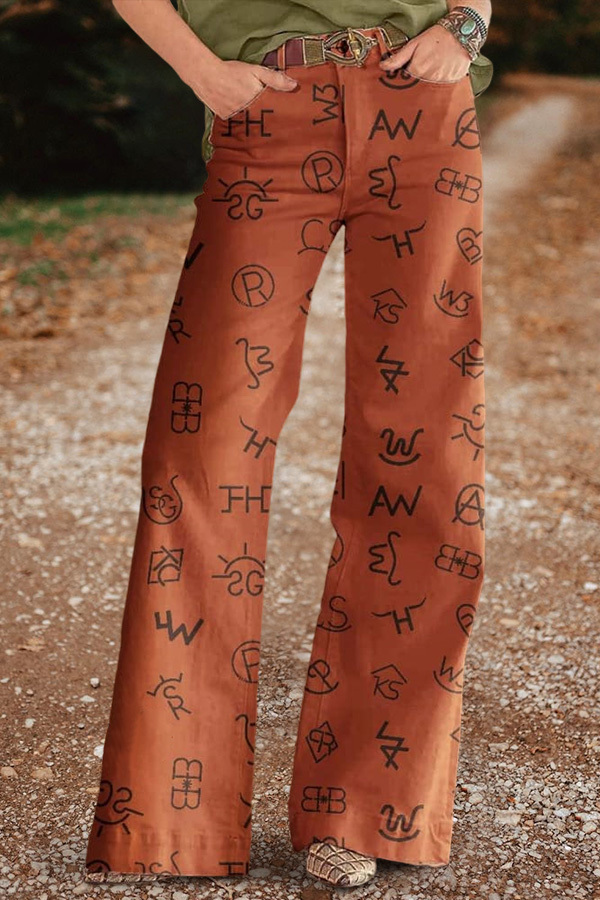 Vintage Western Symbol Print Casual Wide Leg Jeans