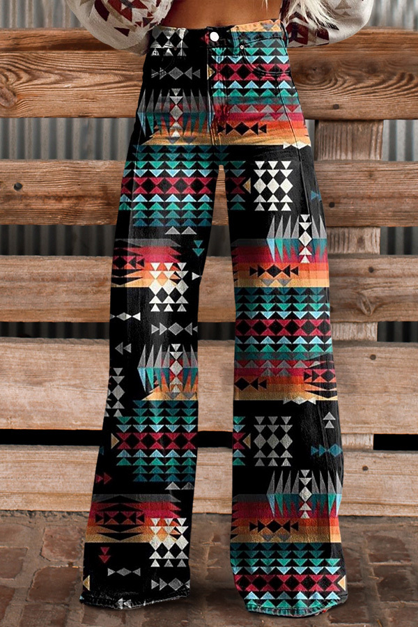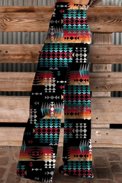 Colorful Geometric Pattern Print Casual Wide Leg Pants