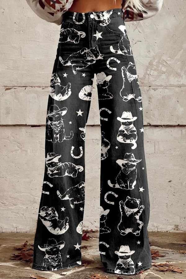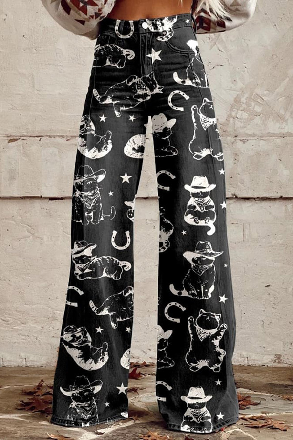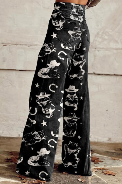 Cowboy Cats And Kittens Western Print Wide Leg Pants