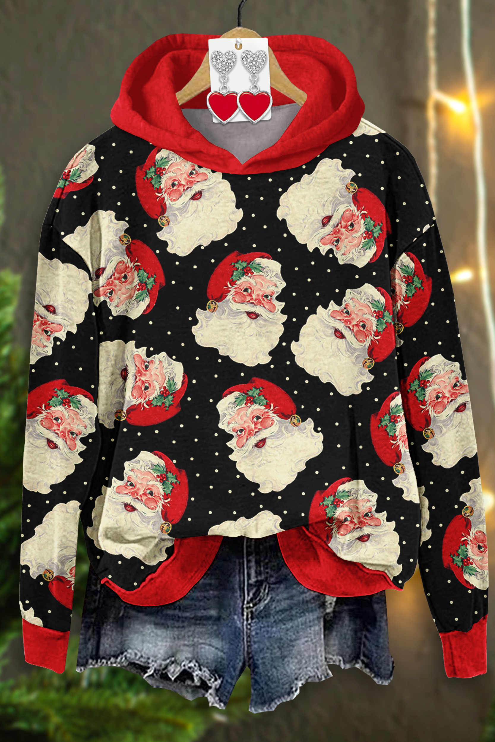 Classic Christmas Santa Claus Print Hoodie