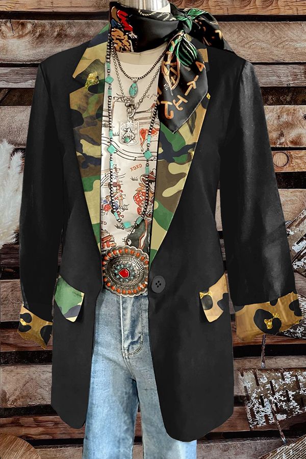 Leopard Camouflage Print Patchwork Blazer