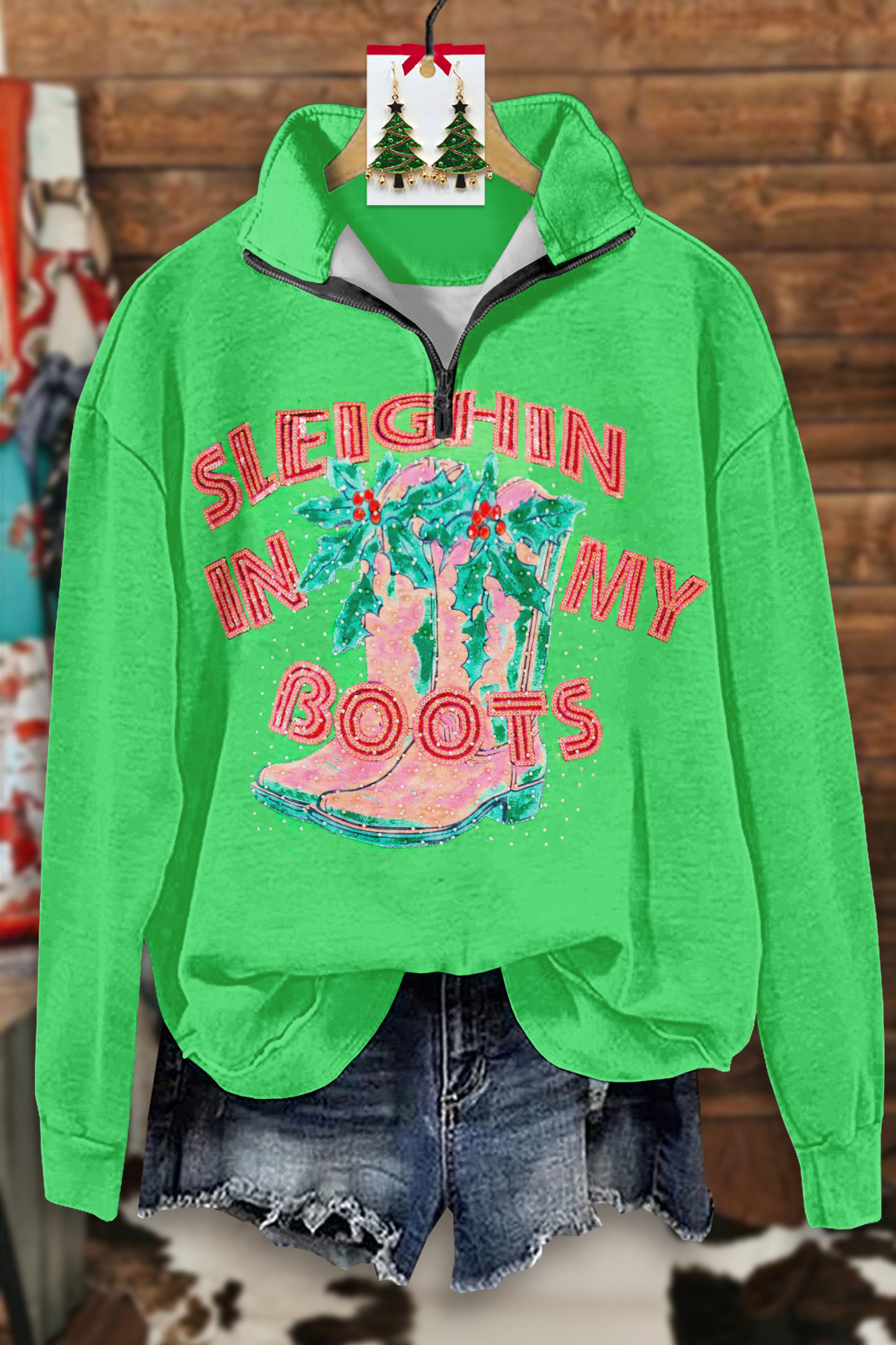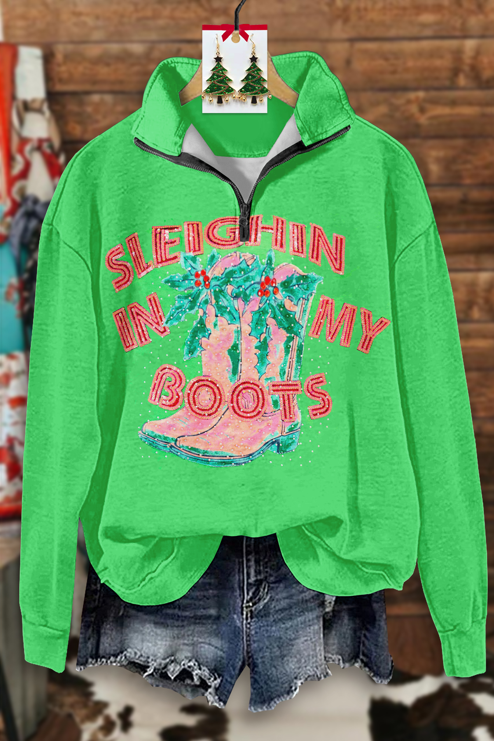 Christmas Western Boots Zip-Up Sweatshirt