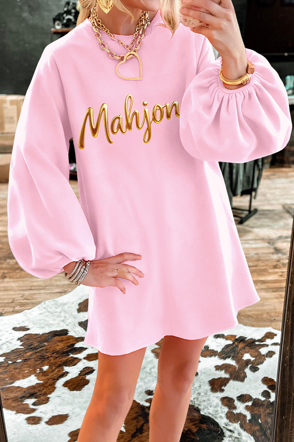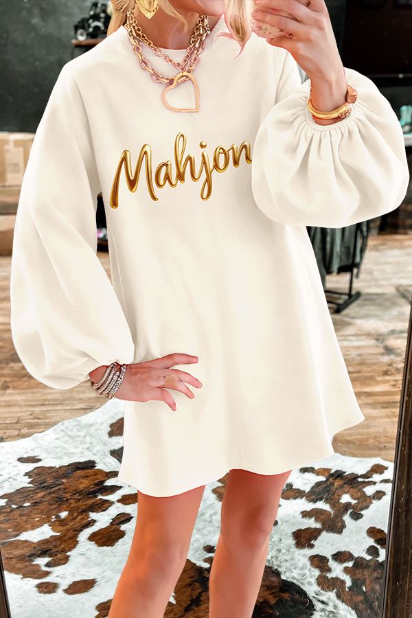 Love Mahjong Puff Sleeve Sweatshirt Dress