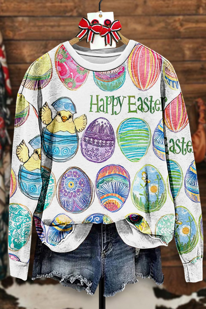 Vintage Easter Bunny Print Sweatshirt