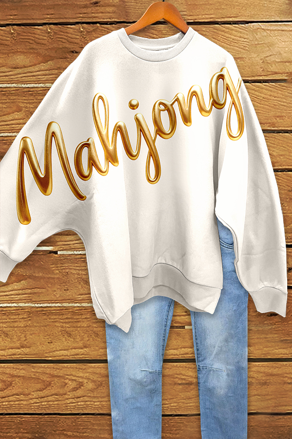 Love Mahjong Shiny Batwing Sleeve Sweatshirt