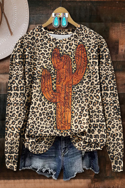 Leopard Print Cactus Print Sweatshirt