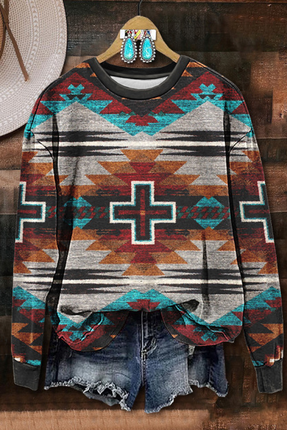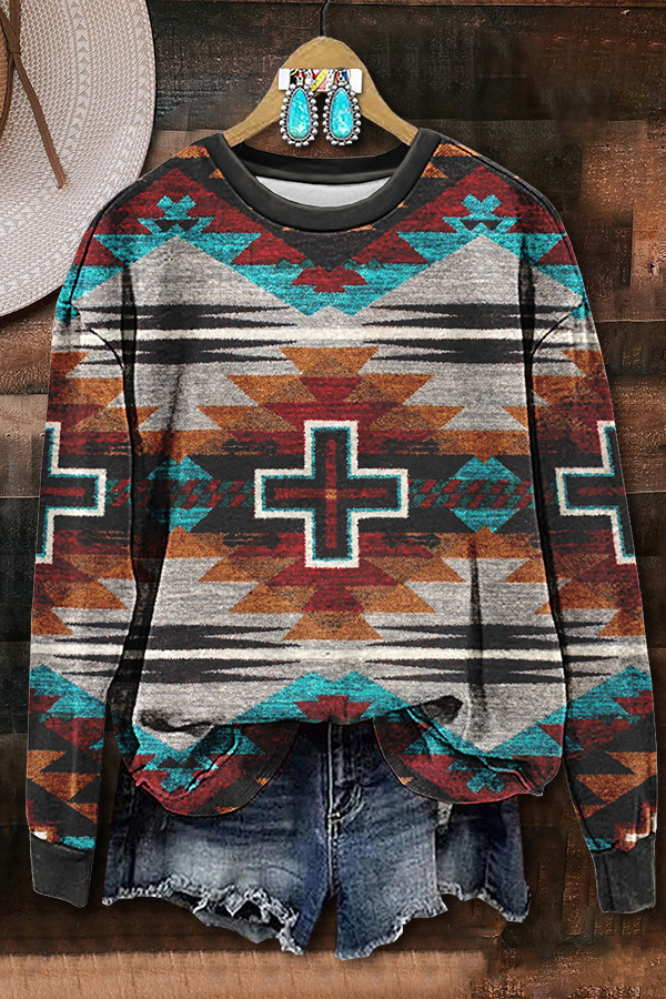 Retro Ethnic Western Aztec Printed Sweatshirt