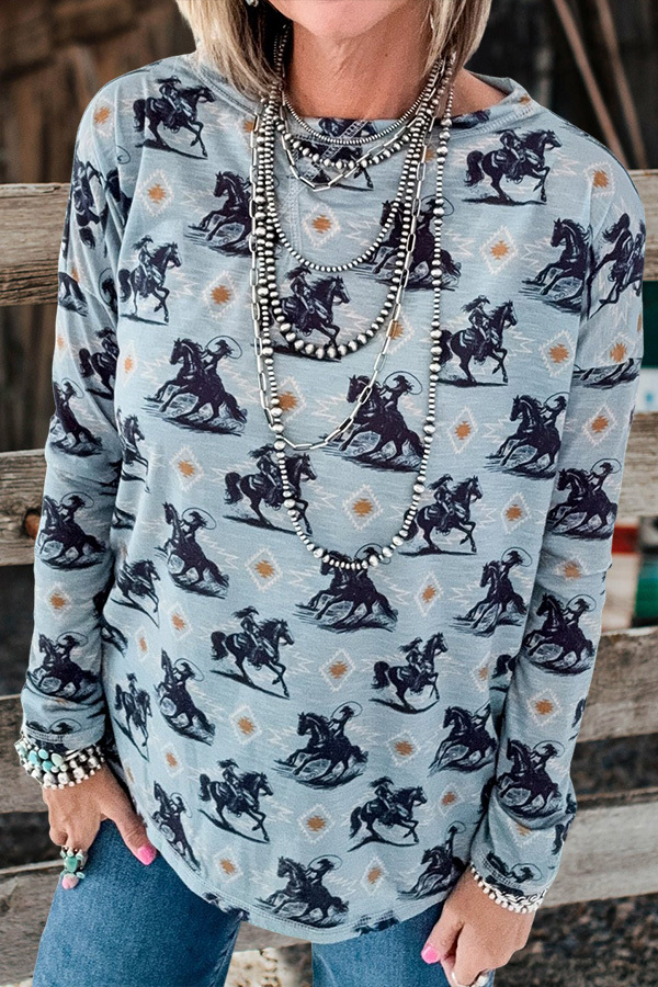Stay on trend this season in our new casual, round neck t-shirt. We especially love the graphic print fabric and think this piece will be a new favorite in your closet!