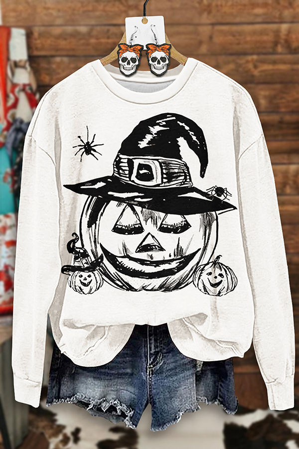 Halloween Pumpkin Print Sweatshirt