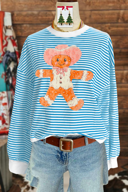 Cute Christmas Western Gingerbread Man Striped Sweatshirt