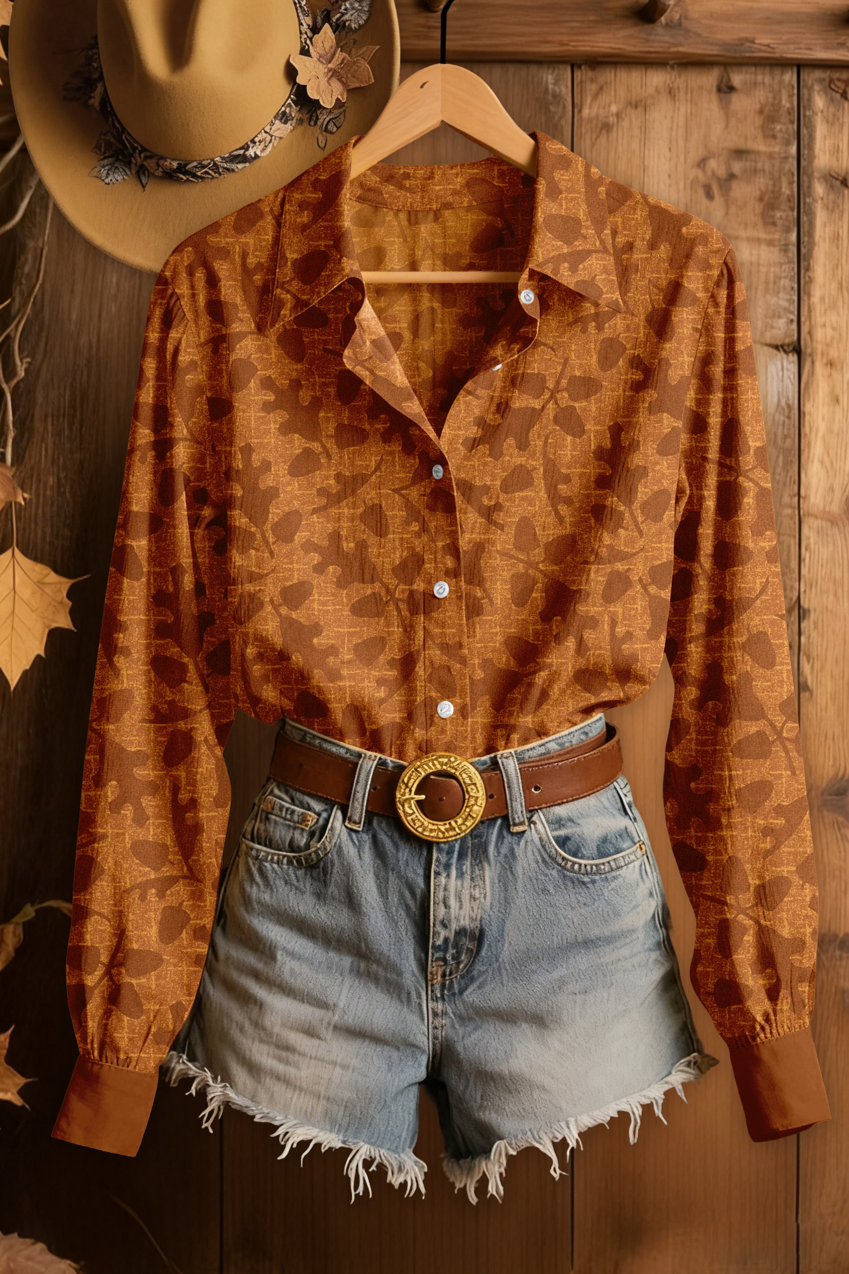Vintage Autumn Leaf Print Shirt