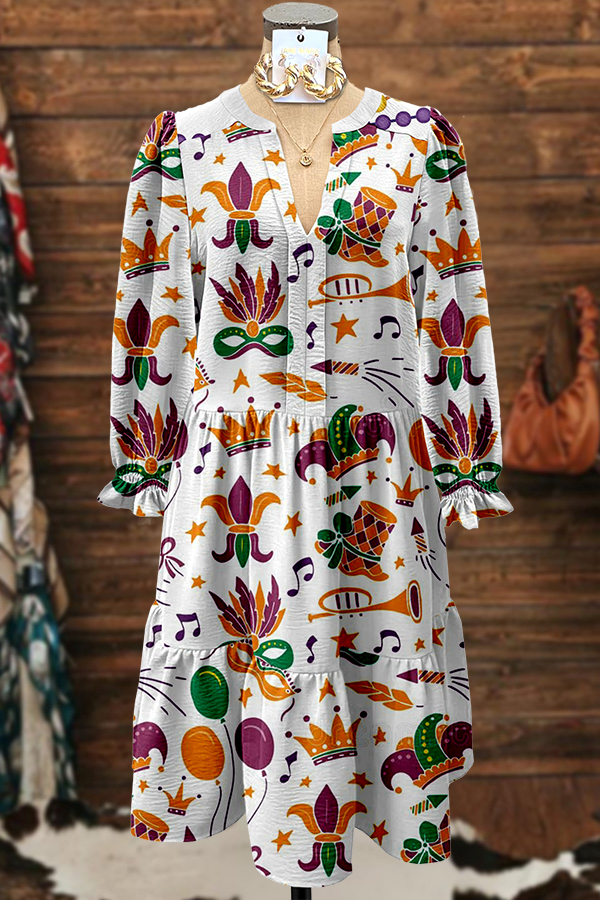 Mardi Gras Mask Iris Ruffle Dress