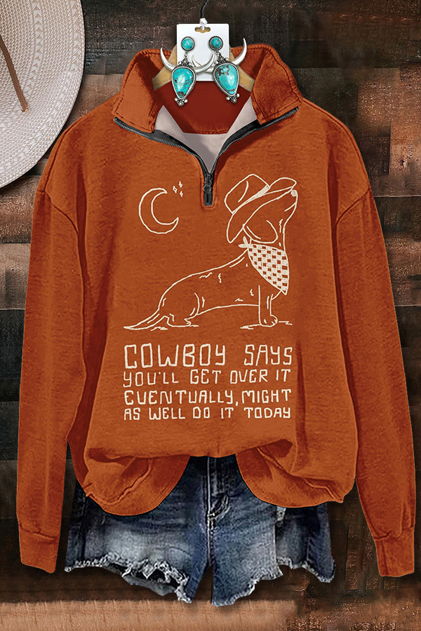 Cowboy Dachshund Print Zipper Sweatshirt