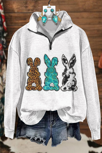 Western Easter Bunny Turquoise Zip Sweatshirt