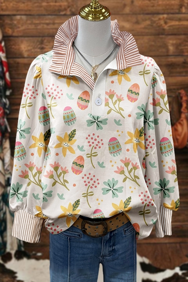 Easter Flower Egg Striped Ruffle Blouse
