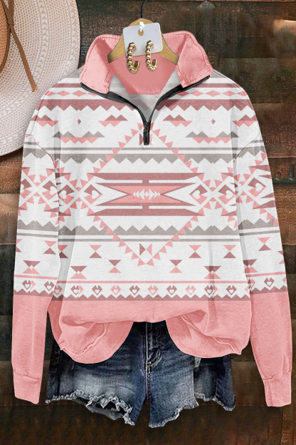 Stay on trend this season in our new casual, mandarin collar top. We especially love the tribal print fabric and think this piece will be a new favorite in your closet!