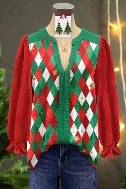 Stay on trend this season in our new classic, v neck top. We especially love the christmas fabric and think this piece will be a new favorite in your closet!