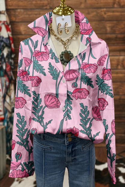 Sweet Floral Print Long Sleeve Shirt