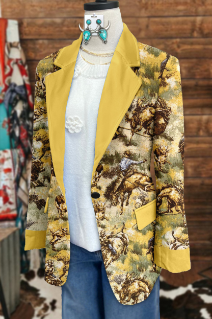 Western Horseback Cowboy Print Blazer