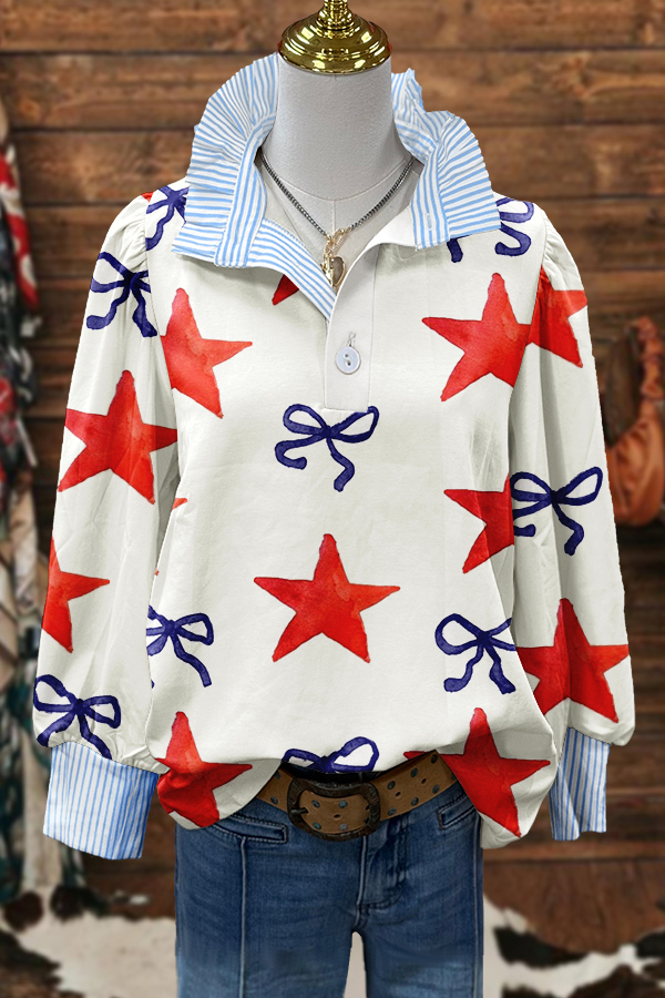 Chic Patriotic Day Print Puff Sleeve Blouse