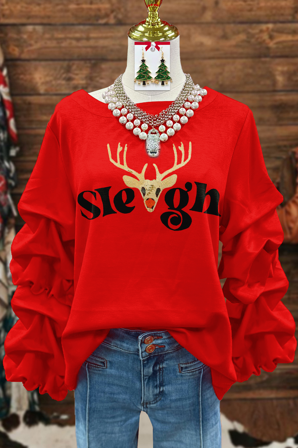 Classic Christmas Elk Sleigh Sweatshirt