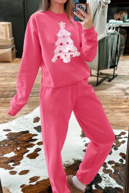 Christmas Tree Print Two-Piece Jersey and Pants Set