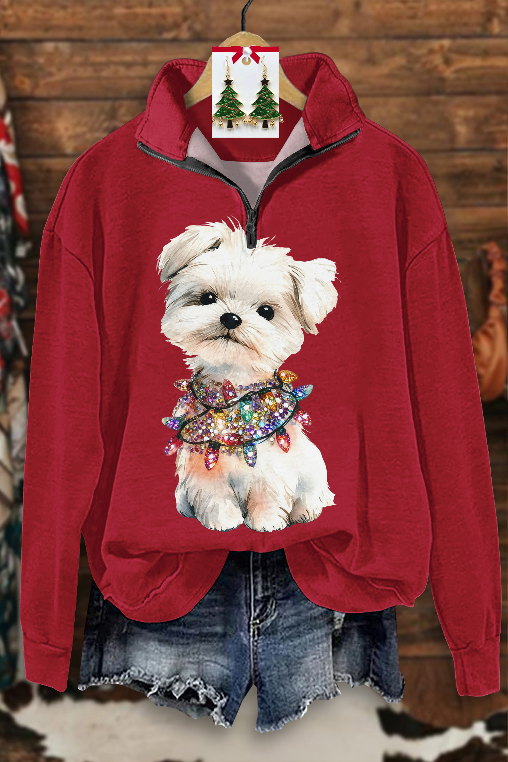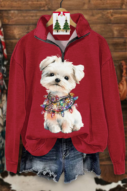 Cute Christmas Puppy Zip-Up Sweatshirt