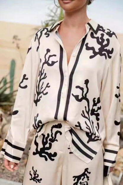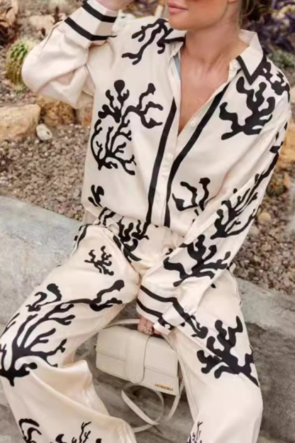Stay on trend this season in our new elegant, lapel set. We especially love the graphic print fabric and think this piece will be a new favorite in your closet!