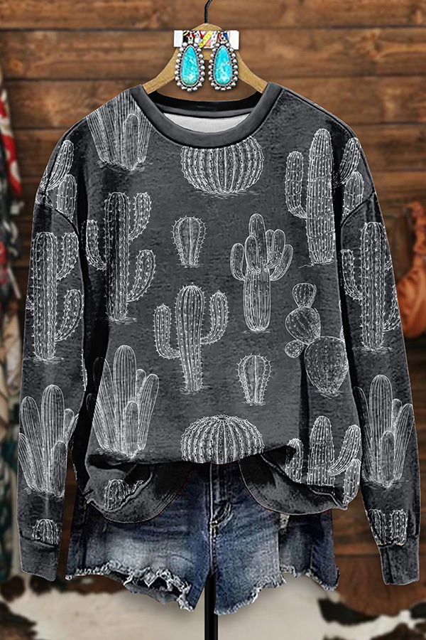 Vintage Western Cactus Print Sweatshirt