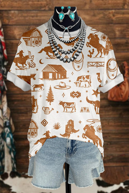 Retro Western Print T-Shirt