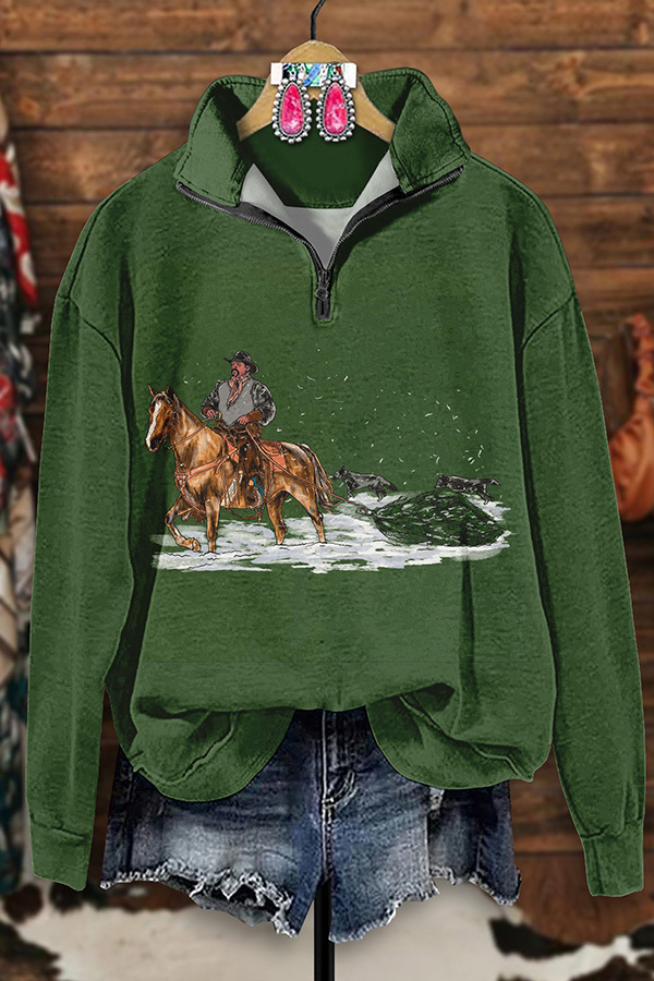 Vintage Western Rodeo Print Zip-Up Sweatshirt