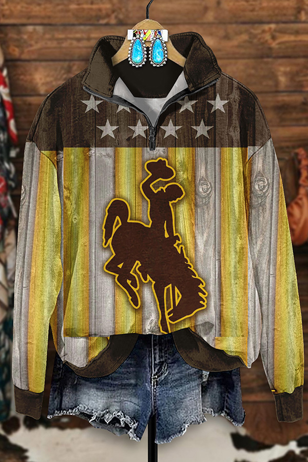 Vintage Western Rodeo Print Zip-Up Sweatshirt