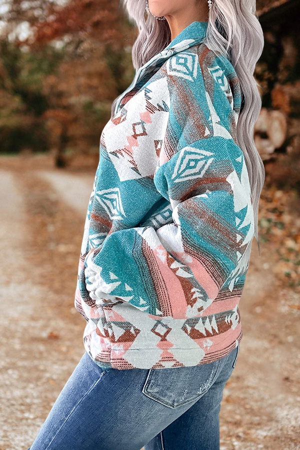 Stay on trend this season in our new pretty, shirt collar sweatshirt. We especially love the abstract print fabric and think this piece will be a new favorite in your closet!