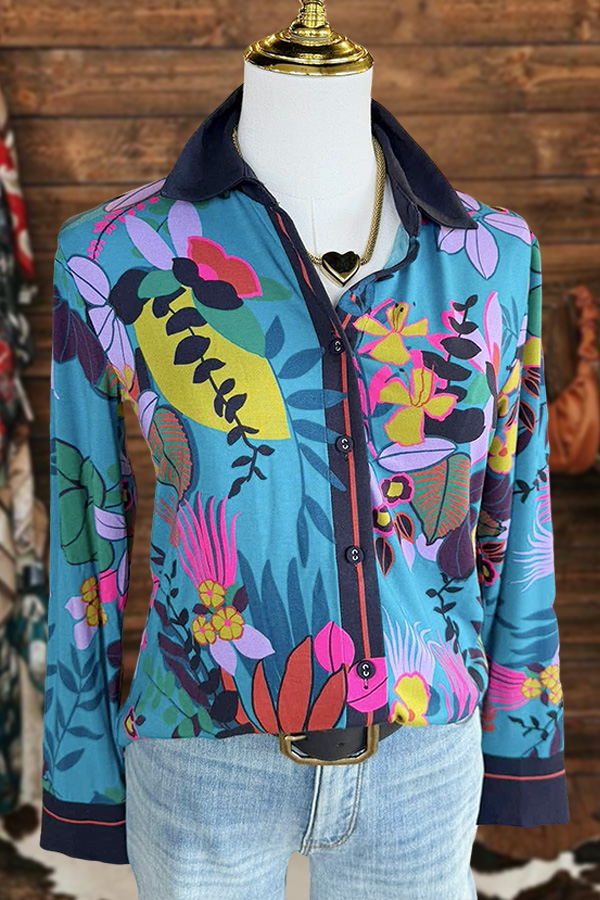 Stay on trend this season in our new pretty,stylish, shirt collar top. We especially love the flower print fabric and think this piece will be a new favorite in your closet!