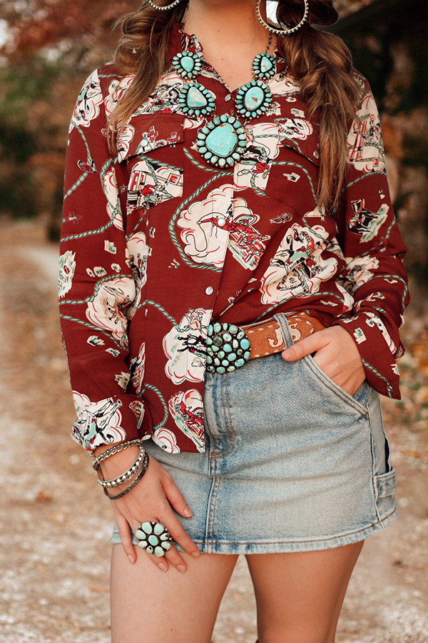 Vintage Western Rodeo Print Shirt