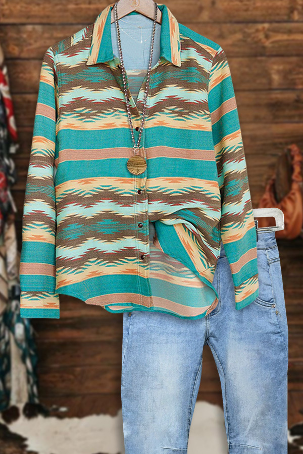 Ethnic Style Contrasting Striped Long-Sleeve Shirt