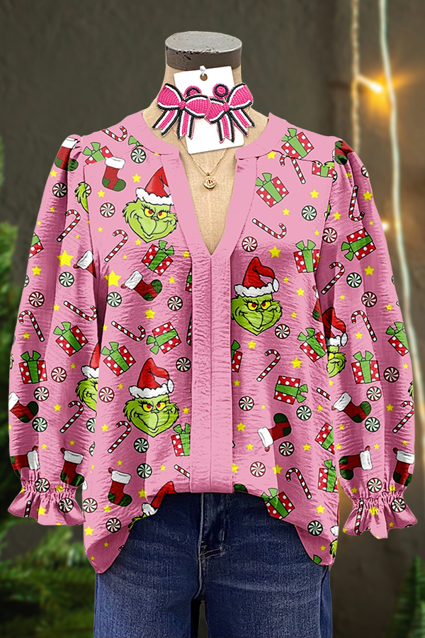 Stay on trend this season in our new casual, v neck blouse. We especially love the cartoon print fabric and think this piece will be a new favorite in your closet!