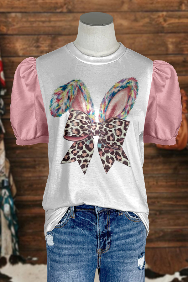 Cute Easter Bunny Print Puff Sleeve T-Shirt
