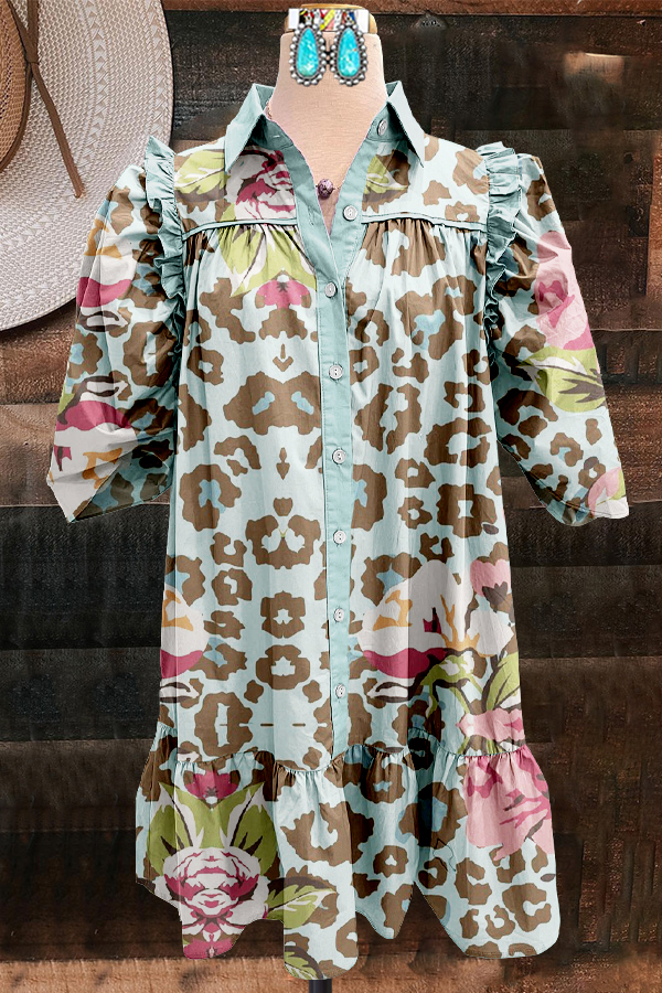 Blue Pink Leopard Print Midi Dress