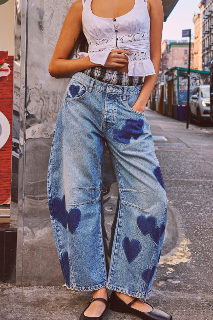 Casual Loose Printed Denim Trousers