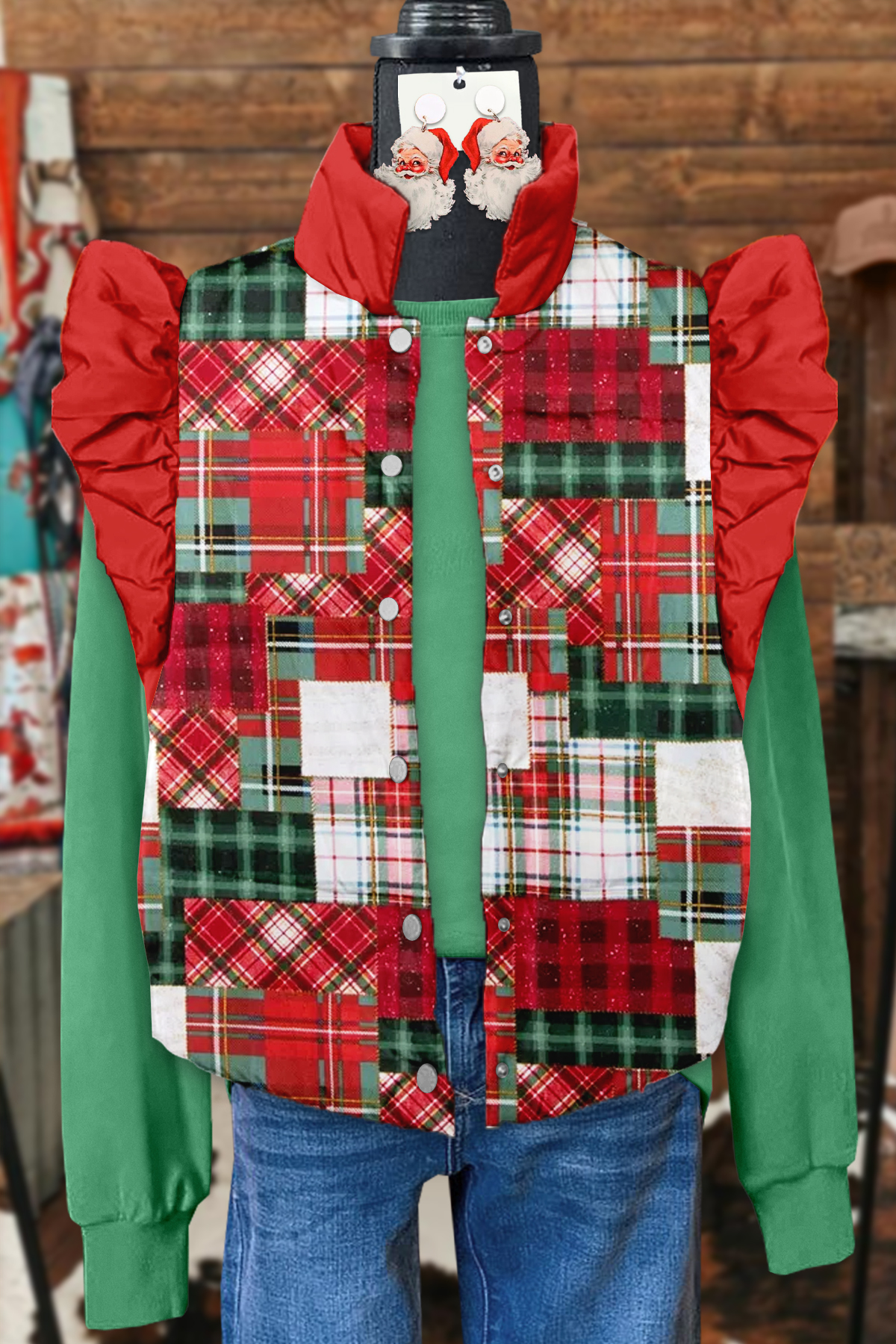 Christmas Plaid Print Fly Sleeve Vest