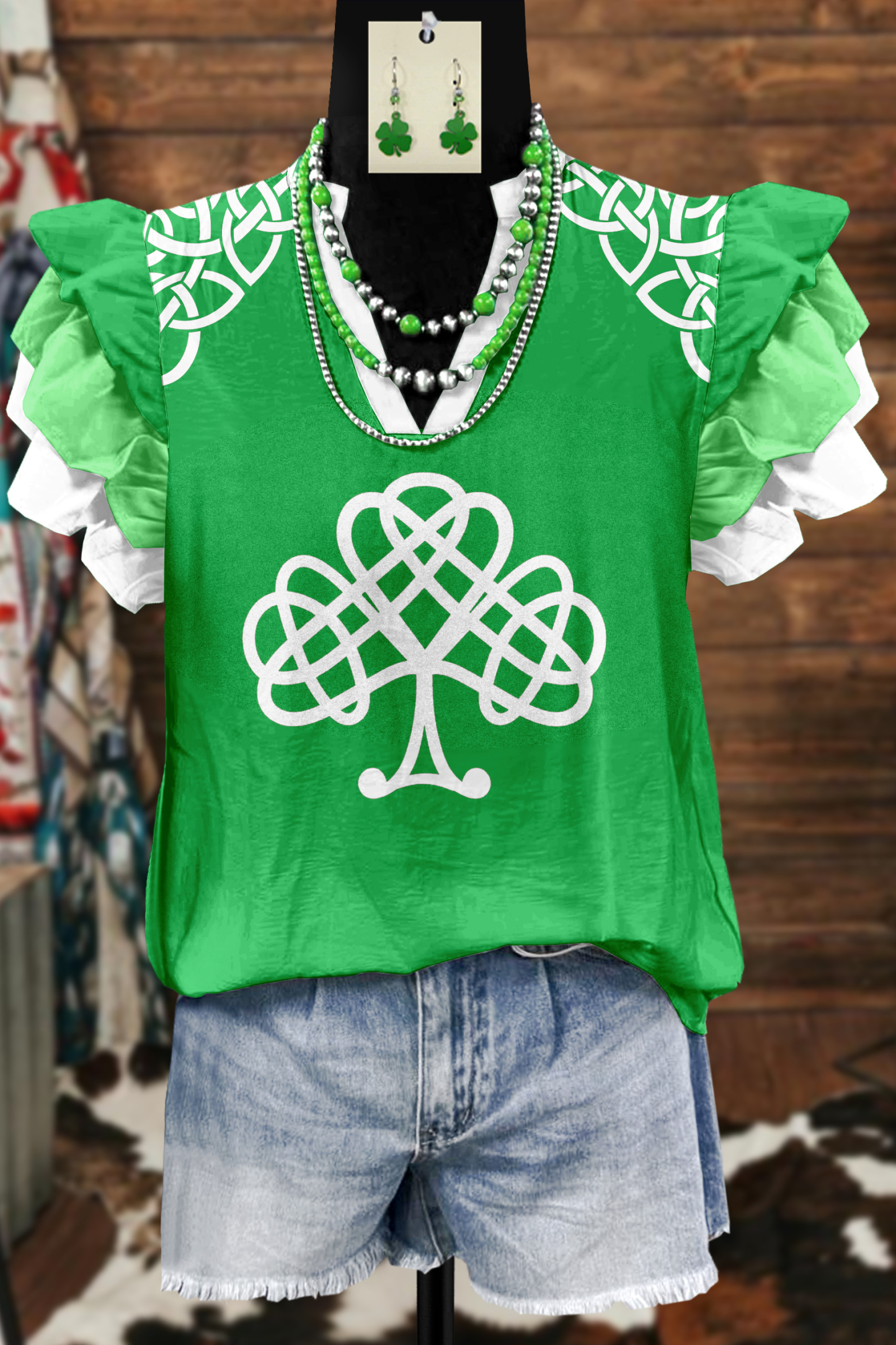 Classic Celtic Knot St. Patrick's Day Print Flying Sleeve Blouse