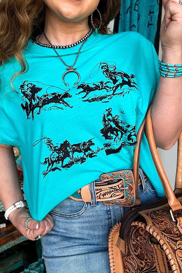 Turquoise Cowboy Rodeo T-Shirt
