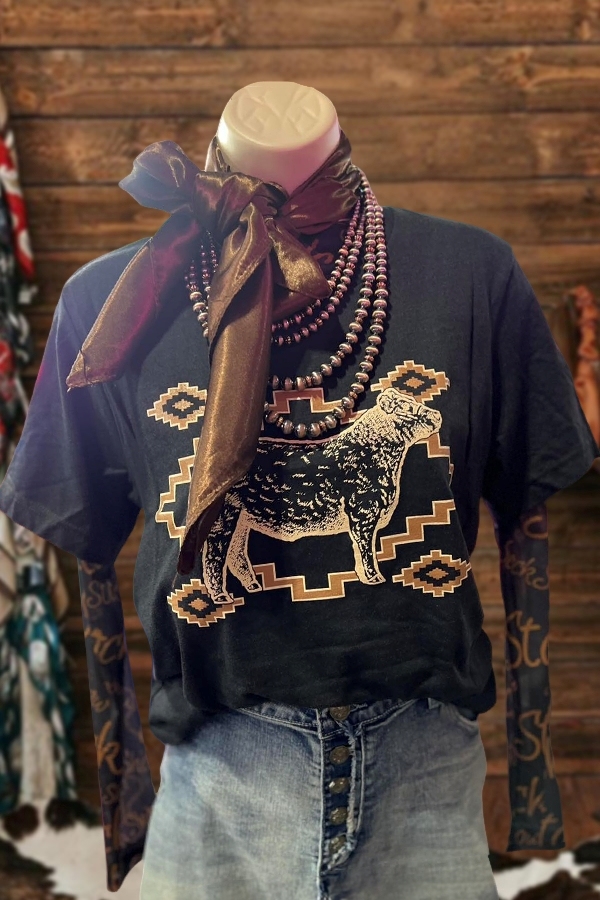 Western Aztec Cow Print T-Shirt