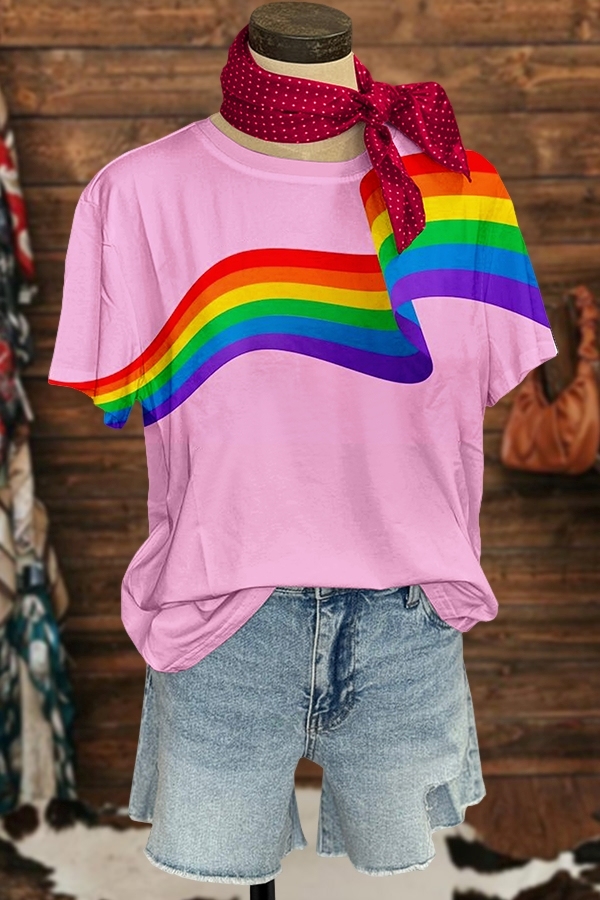 Stay on trend this season in our new casual, round neck t-shirt. We especially love the graphic print fabric and think this piece will be a new favorite in your closet!
