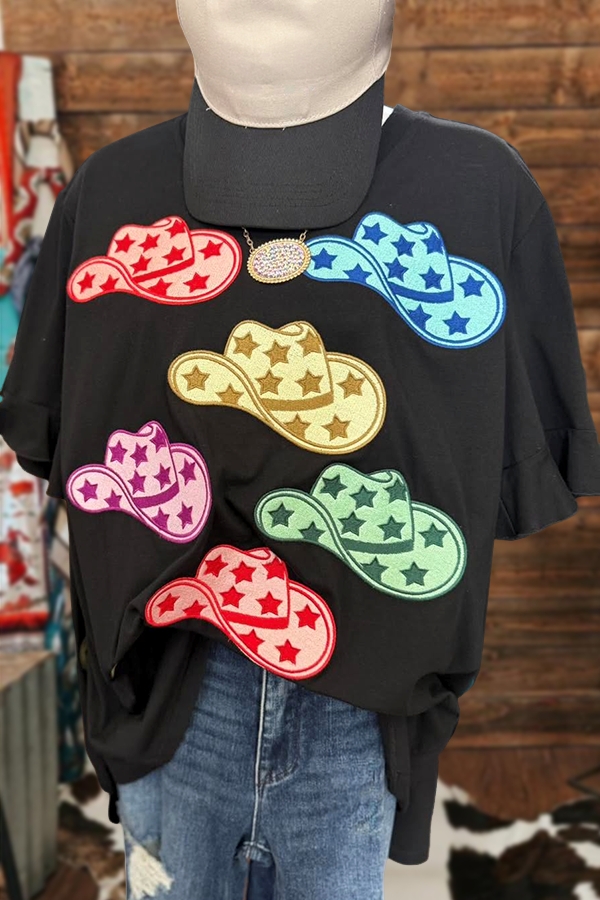 Stay on trend this season in our new casual, round neck t-shirt. We especially love the graphic print fabric and think this piece will be a new favorite in your closet!