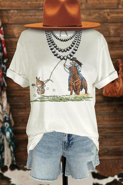 Western Easter Cowgirl Bunny Egg T-Shirt